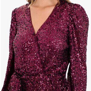 Betsy & Adam Burgundy Sequin Faux Wrap Dress Size 4 Formal Cocktail