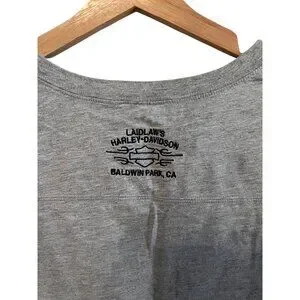 Harley Davidson Gray Tee Short Sleeve Tshirt Cutout Neck Women's Size L Y2K