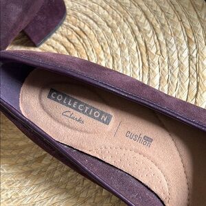 Clarks Elegant Nude Purple Leather Suede Women's Bow Tie Detailing Shoes Size 8