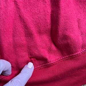 Bold red hoodie featuring 'Lifeguard' and 'Virginia Beach' in white. Includes cross design and sleeve text.