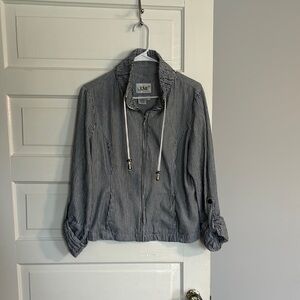 Aprox 14 wide by 12.5 tall. Adjustable straps. Small Ink stain on the inside.