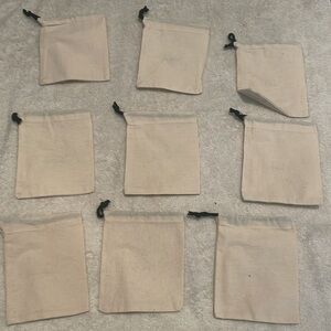 New J. Crew beige drawstring jewelry pouch dust bags. There are a total of (9) that each measure 4” across and 5” tall.