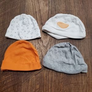 Carters Gerber Baby Essentials 4 Hat Cotton Beanie Star White Gray Orange Unisex