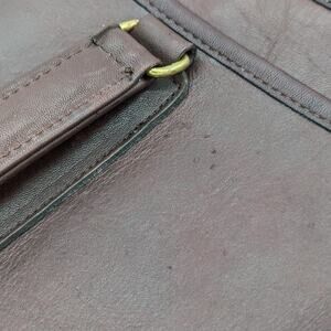 Style: zip close, outer slip pockets, double handle, inside multi pocket, glove tanned leather, vintage, 1986, #5090