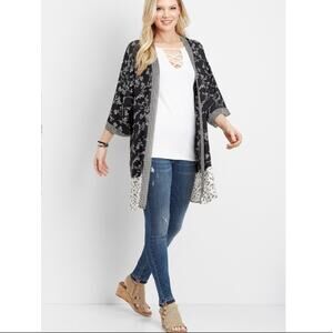Maurices Kimono Top Open Front Mixed Print Black White Top Kimono Small Medium