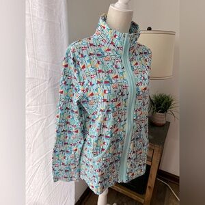 Talbots zip sweatshirt in a fun nautical print! Very good used condition; gently worn with no major flaws to note. Size large.