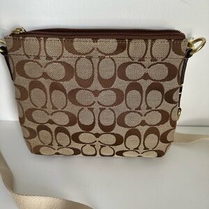 Coach Brown and Cream Signature Crossbody Bag