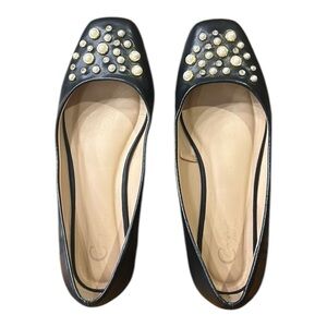 Cato Comfort 1946 Faux Leather Beaded Square Toe Ballet Flats Black Size 7