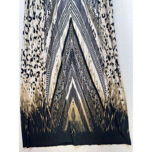 Chicos Womens Chevron Diane Maxi Dress Sze 2 Black Beige Geo Leopard Stretch