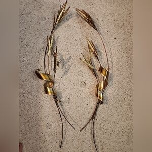 Set Of 2 Wheat Stalk Metal Art Wall Hanging Brass & Copper MCM Sculpture 30”