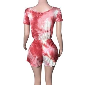 Stylish red and white tie-dye romper. Perfect for casual outings.