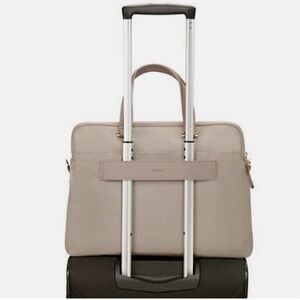 Like new & used only once! This stylish taupe laptop bag by Samsonite is perfect for work and play. Features a sleek design with multiple compartments, and adjustable/removable shoulder strap. 12”tall x 15” length