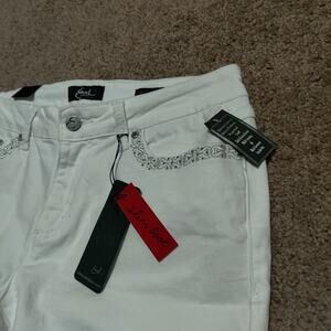 Earl Jeans Womens 12 ( 31 x 30 ) White Embroidered Flap Pockets Slim Boot New