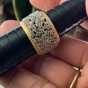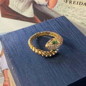 Frida Rothmans rings are sterling, silver core, 14 karat gold and rhodium matte finished. Handset cubic zirconia.