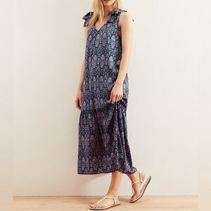 Banana Republic Midi Tiered Dress Ikat Print Positano Blue Boho Flowy Medium