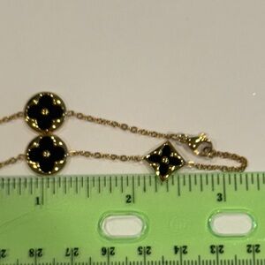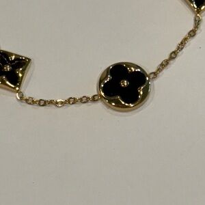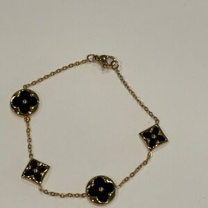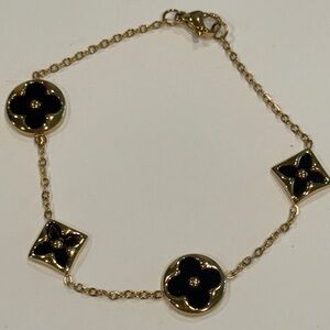 Add a touch of Parisian luxury to your jewelry collection with this stunning gold-tone bracelet, featuring alternating round and square charms with striking black enamel floral accents. The delicate chain and secure lobster clasp make it both elegant and wearable for any occasion—perfect for stacking or wearing solo.