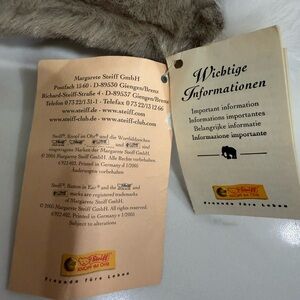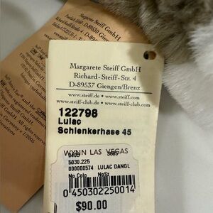 VINTAGE RARE STEIFF "Lulac" Grey Bunny Rabbit Plush Stuffed Animal Toy, 19 inches. Dangling legs. Mohair. New with Tags. Has chest & ear tag.