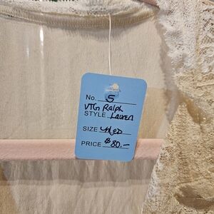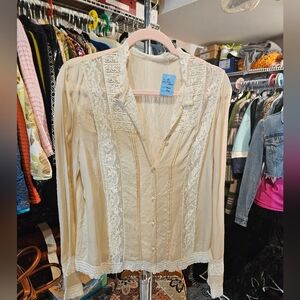 This elegant cream blouse features delicate lace detailing, perfect for adding a touch of sophistication to any outfit.