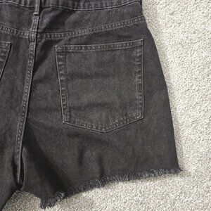H&M ~ black ~ DENIM SHORTS ~ cotton ~ FRINGED HEM