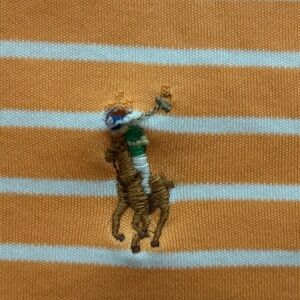 Polo Orange/White Striped Short Sleeve Polo Shirt -size Medium