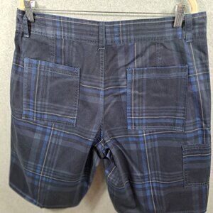 OP Ocean Pacific Mens 34-36 Black Blue Plaid 100% Cotton Casual Shorts Zip Flat
