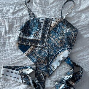 Peppermayo strapless dress. I bought this for college graduation and couldn't return. It's so cute but was small on me. It's a size 2 but fits more like a petite 0. Open to offers!