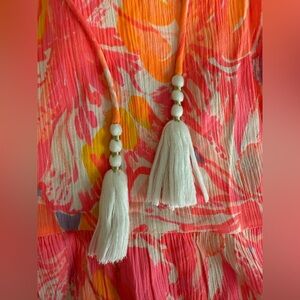 I believe the Print is multi sun splash. Excellent used condition. See pics for all fringe and beads in great condition.