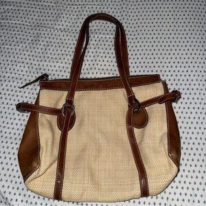 Colorful tweed elevates this convertible crossbody detailed with a stacked T logo hardware, leather trim and gleaming chain strap. • Magnetic-snap flap closure • Pull-through chain strap • White with black, red, yellow, purple, green, orange, blue • Three interior compartments; zip pocket • Cotton lining • Textile/wool/leather/mohair/alpaca • Convertible cross body to shoulder bag Minor surface wear (fuzzy) to tweed - pictured Measures 10” wide, 6” high, 3” deep Strap drop 11.5”/21.5”