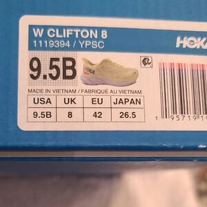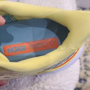 stylish Hoka yellow running shoes with vibrant accents. Perfect for active wear. these are size 9.5 B clifton 8