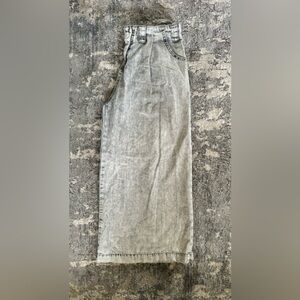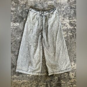 One Teaspoon's Gray Acid Wash Paperbag Waist Wide Leg Jeans are lightweight, relaxed jeans with a light gray acid wash and a paper bag waist.