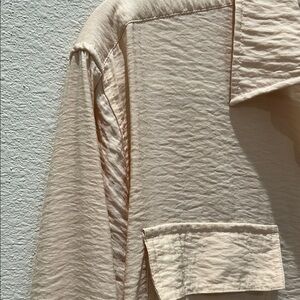 Elevate your wardrobe with this stylish cream button-up shirt. Perfect for any occasion, it offers a classic look with a modern twist. In excellent condition from the summer 2022 collection. Perfect for spring and summer as a layering piece or by itself.