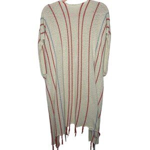 Women's cotton knit ivory stripe fringe boho duster cover up size s/m