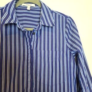 Derek Lam 10 Crosby Striped Fit and Flare Long Sleeve Mini Dress. Blue and White. Collared. 100% Cotton.