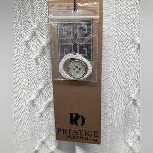 Stylish white cardigan sweater with green and red accents. Perfect for a casual yet sophisticated look.