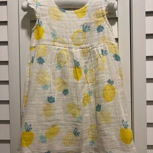 Adorable dress with yellow and blue pineapple print. Perfect for a fun day out. Three snaps along the back. In perfect condition. Smoke and pet free home. Bundle and save.