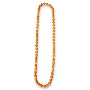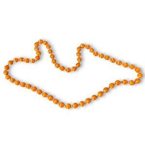 Elegant vintage necklace featuring orange silk satin-wrapped beads and gold-tone spacers. Evokes 70s and 80s charm, perfect for retro fashion enthusiasts. Measures 30 inches, adding a touch of sophistication to any outfit.