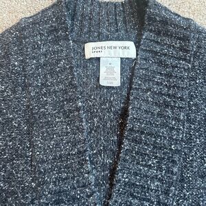 Jones New York Charcoal Gray Cardigan Women’s Sz M Large Button Cotton Wool