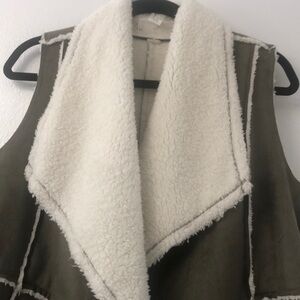 Caslon Reversible Faux Shearling Vest Olive NEW