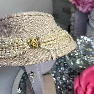 A gorgeous seed pearl necklace with 14k gold beading throughout and a 14k solid gold clasp, like new no flaws. Stamped 14k gold. 18.5 inches long.