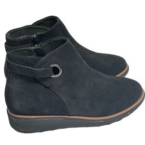 Clark’s Collection Spring “Sharon” Black Leather Suede Ankle Boots Size 9.5