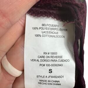 Mason & Belle Burgundy Floral 3/4 Sleeve Sheer Open Crochet Trim Blouse Size S