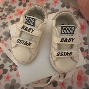 Adorable Burberry baby shoes featuring a classic plaid design in beige and red. Perfect for adding a touch of elegance to your little one's outfit.