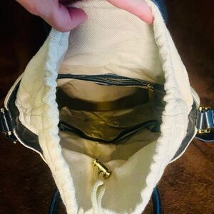 Tory Burch Vintage Convertible Canvas & Leather Crossbody Bucket Bag
