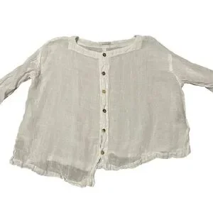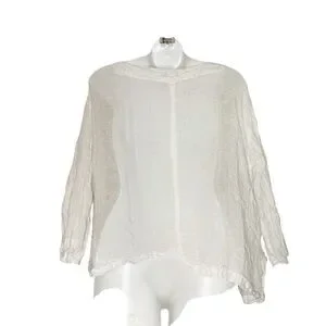 Banana Blue linen white asymmetrical top small Lagenlook oversized artsy boho