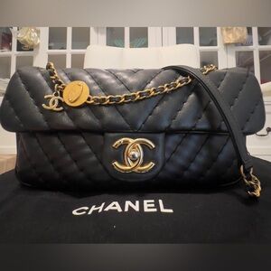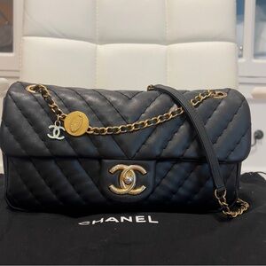 SOLD AUTHENTIC Chanel Medallion Charm Flap Bag ChevronCalfskin Medium