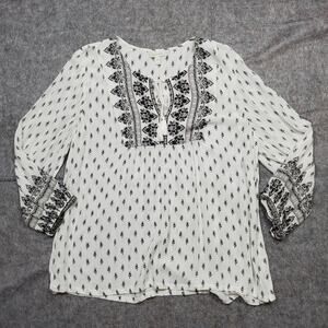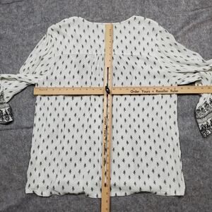 Garnet Hill Top Womens 12 Popover Paisley Boho Balloon Sleeve Tassel Tie Neck