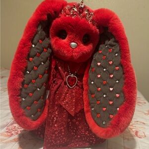 Adorable plush bunny with intricate pink ear designs. Comes with a matching pink gift box.