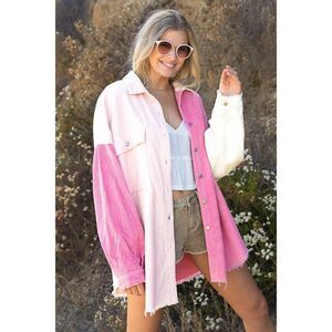 POL Clothing Blush Hot Pink Corduroy Color Block Shacket Button Up Womens SMJ183