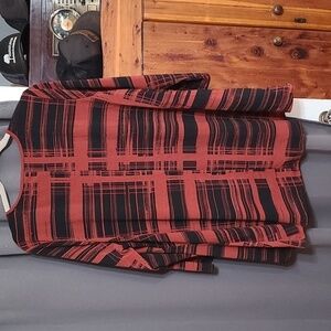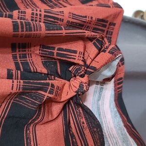 NWT Avenue Womens Blouse Rust/Blk V-neck Stretch Comfort Size 18/20. 3/4ish sleeves. Armpit to armpit approximately 25 inches. Length approximately 30 inches. (3174)