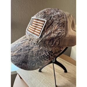 This Magellan Outdoors camo trucker hat is a rugged and stylish accessory, perfect for outdoor enthusiasts or casual wear. Featuring a detailed camouflage design, the front panel showcases an embroidered American flag patch in earthy tones for a patriotic touch. The breathable mesh back ensures comfort during extended wear, while the adjustable snapback closure allows for a customizable fit. Made with durable materials, this hat is in excellent condition with no visible signs of wear (as shown in photos). Brand: Magellan Outdoors Material: Polyester/Cotton blend Color/Design: Camouflage with tan mesh back and embroidered American flag patch Features: - Embroidered American flag patch on the front panel - Breathable mesh back for ventilation - Adjustable snapback closure for a secure fit - Durable construction for outdoor use This Magellan Outdoors trucker hat is perfect for combining style and functionality during your outdoor adventures!